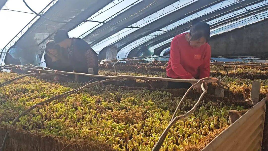 产业兴旺带动就业增收,各个基地长期吸纳仙人洞村内20余名村民稳定务工,涵盖枝条处理、日常管护、采摘分拣等环节,每人冬季务工期可增收2000至3000元,让村民冬闲变冬忙、在家门口就能挣钱 。“年纪大了,出门打工不方便,俺们就趁着寒冬腊月在棚子里侍弄刺嫩芽。活儿不算太累,工资也挺高,我们感到很满足。”村民李华说。